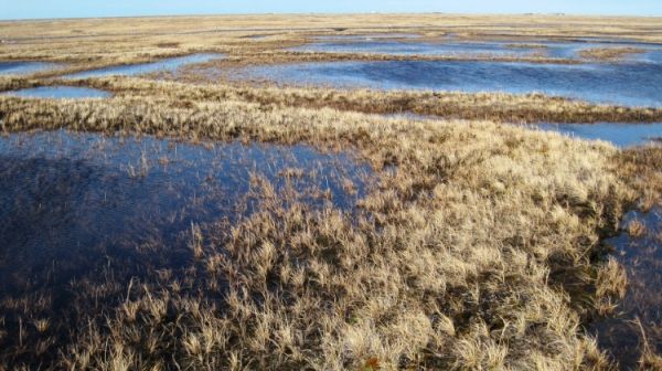 Using deep learning and supercomputers, researchers have been able to identify and map 1.2 billion ice wedge polygons in the Arctic permafrost based on satellite imagery. The data helps establish a baseline from which to detect changes to the region. (Photo Credit: Anna Liljedahl, Woodwell Climate Research Center)