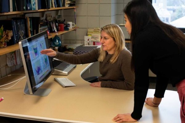 Climate and Space Sciences and Engineering Professor Allison Steiner and graduate student research assistant Yingxiao Zhang discuss their work. (Photo credit: Marcin Szczepanski)