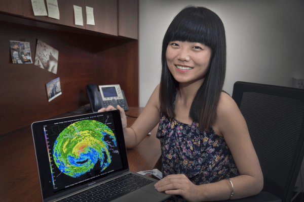 Dié Wang, an assistant meteorologist at Brookhaven National Laboratory, is lead author of a paper looking back at 10 years of weather data over southeastern Texas to categorize conditions in a way that will help scientists tease out the effects of aerosols on storms. (Photo Credit: Brookhaven National Laboratory)