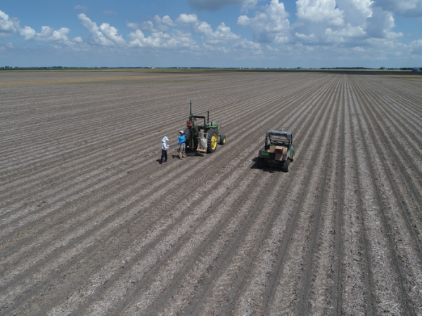 Image: Research Technician Michael Douglass and Postdoctoral Researcher Nan Li conducting deep soil coring for quantifying soil organic carbon stocks on a farm in Piatt County, Ill. (Credit: Dan Schaefer)