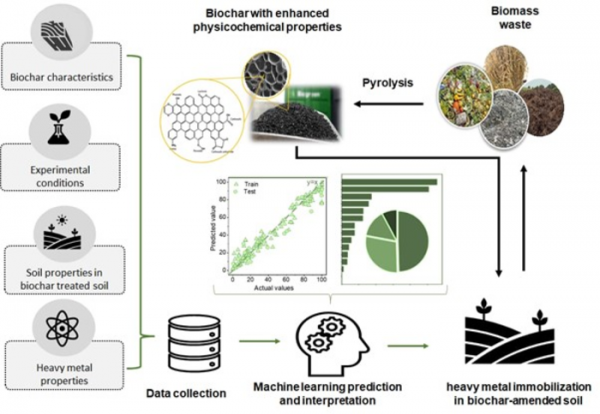 Biochar, or thermally decomposed biowaste, is an effective way of managing heavy metal (HM) contamination of soils. However, the optimal conditions for achieving maximum HM immobilization with biochar vary widely depending on biochar, soil, and HM properties. An international research team adopted an empirical approach to determining the optimum conditions beforehand using machine learning modeling. Their results can help optimize biochar-based soil remediation efficiency and open doors to a biochar-based green economy.