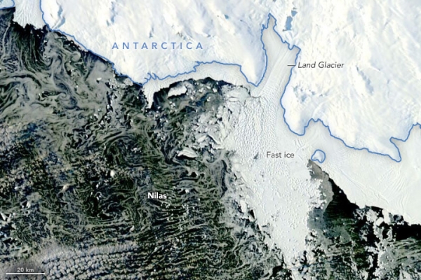 Michael Lowe, an analyst at the U.S. National Ice Center who pointed out the changes, has been closely watching this part of the Antarctic coastline, known as Marie Byrd Land. “I've had my eye on that area over the past two months as a large area of very old fast ice began to break apart,” Lowe said. “When comparing two SAR images from consecutive days I saw that the tip of the Land Glacier was starting to break up.”