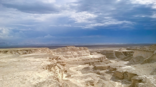 Sediments formed in the Lisan lake during lake level highstand between ca 24.000 and 14.000 years ago. Today, these lacustrine deposits are found more than 200 metres above the water level of the Dead Sea. View from Masada across the Dead Sea. (Photo Credit: GFZ)