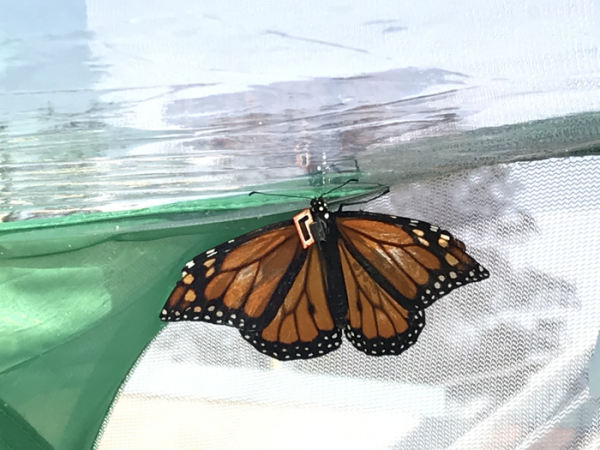 Monarch Butterfly with mSAIL in its enclosure. (Photo Credit: Delbert A. Green II)