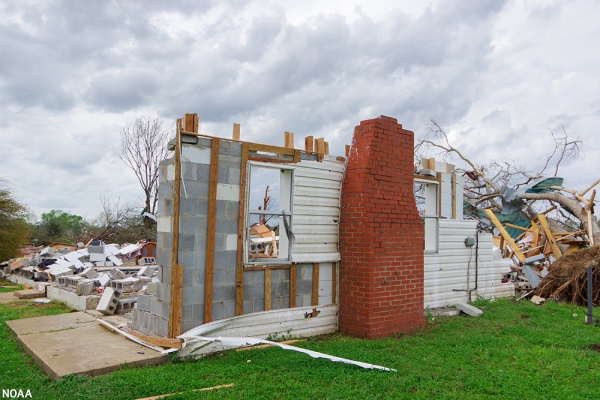 A tornado destroyed this home in Sawyerville, Alabama, on March 25, 2021. (Photo Credit: NOAA)