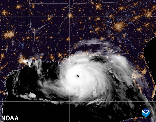 A visible satellite image of Hurricane Ida approaching land in the Gulf of Mexico taken by NOAA's GOES-16 (GOES East) satellite at 4:10 am (EDT) on August 29, 2021. (Photo Credit: NOAA)