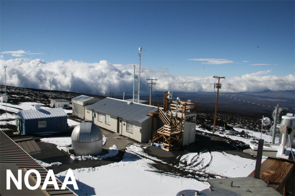The Mauna Loa Observatory in Hawaii is a benchmark site for measuring carbon dioxide, or CO2. NOAA and the Scripps Institution of Oceanography make independent measurements from this station on the slopes of Mauna Loa volcano. (Photo Credit: NOAA)