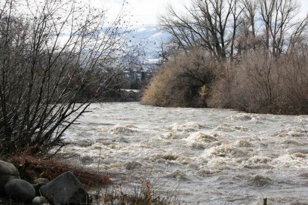 The Truckee River in Reno, Nev. during high flow conditions after a storm in late January, 2016. (Photo Credit: Kelsey Fitzgerald/DRI)