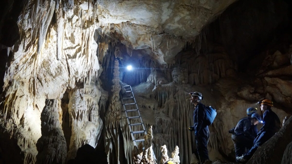 Image: A recent study co-led by WHOI found that the Azores High has expanded dramatically in the past century, resulting from a warming climate due to a rise in anthropogenic greenhouse gas concentrations. Researchers associated with the study collect data inside the Buraca Gloriosa cave in western Portugal, a site of the stalagmite hydroclimate proxy record. (Image credit: Diana Thatcher/ © Iowa State University)
