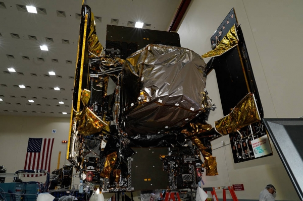 Crews recently completed the first fully integrated powered testing of the Tropospheric Emissions: Monitoring of Pollution (TEMPO), instrument on Intelsat IS40e at Maxar Technologies' satellite manufacturing facility in Palo Alto, California. (Photo Credit: Maxar Technologies)