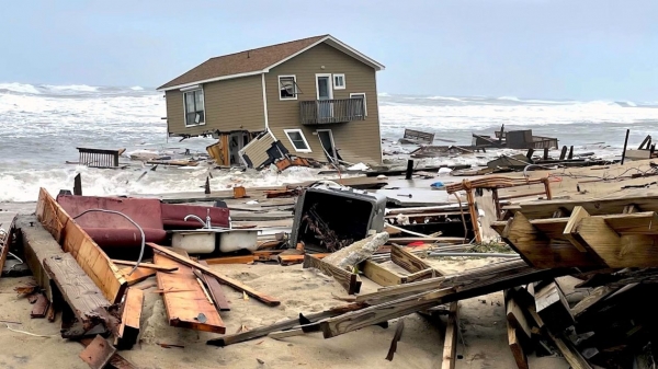 A house in Rodanthe, North Carolina that collapsed into the ocean during a storm, May 2022. (Photo Credit: CAPE HATTERAS NATIONAL SEASHORE)