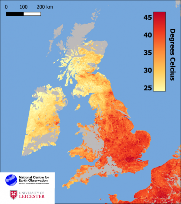 Earth Observation (EO) experts based at the University of Leicester have laid bare the UK’s record-breaking heatwave with data captured from space.