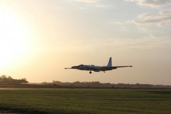 Image: NASA’s ER-2 landing after a day spent flying above thunderstorms for the DCOTSS field campaign. Credit: NASA/Cameron Homeyer