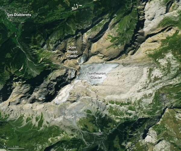 The images feature the Tsanfleuron and Scex Rouge glaciers, located in the Diablerets mountain group. The glaciers rest on different sides of a mountain slope, but they have long been connected at Tsanfleuron pass. According to Matthias Huss, director of the Swiss Glacier Monitoring Network (GLAMOS), melting during summer 2022 exposed a rocky path between the two glaciers at Tsanfleuron pass for the first time in several thousand years.