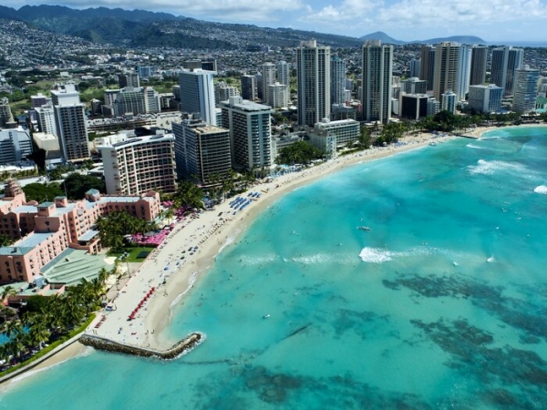 Image: Aerial image of Royal Hawaiian Beach. (Credit: UH Climate Resilience Collaborative)