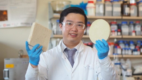 Dr. Jiang, an assistant professor in the UBC faculty of forestry and the Canada Research Chair in Sustainable Functional Biomaterials, started developing a “biofoam” many years ago both to find new uses for wood waste and reduce pollution from packaging foam.