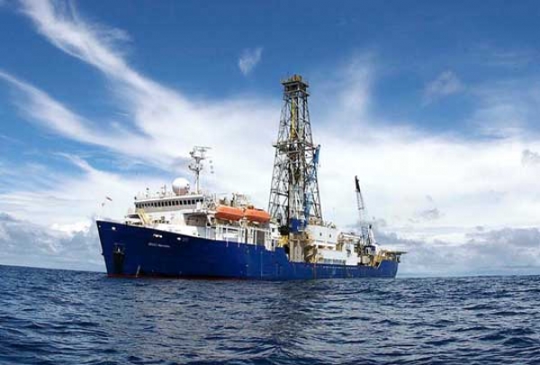 Image: The JOIDES Resolution is a scientific research vessel operated by Texas A&M University for the International Ocean Discovery Program that drills into the ocean floor to collect and study core samples. (Photo courtesy of the International Ocean Discovery Program)