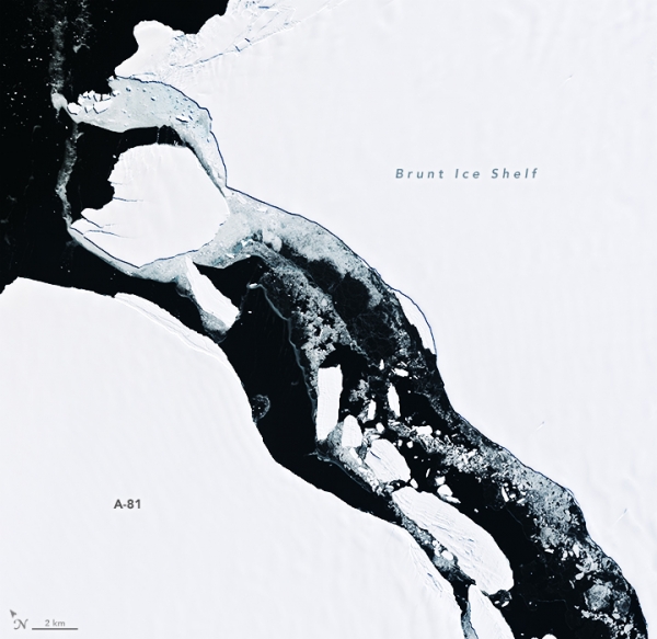 On January 22, 2023, the British Antarctic Survey reported that a new iceberg had broken from Antarctica’s Brunt Ice Shelf. In the days following the long-awaited break, satellites have captured several new images of the behemoth berg as it drifts south.