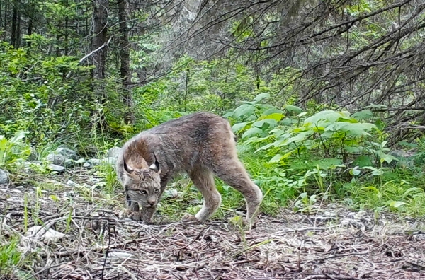 An image of a Canada lynx taken by a motion sensitive camera as part of a study conducted in Glacier National Park (Photo Credit: of Alissa Anderson).