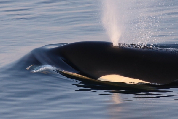 A Southern Resident killer whale with a salmon. (Photo Credit: Melisa Pinnow)