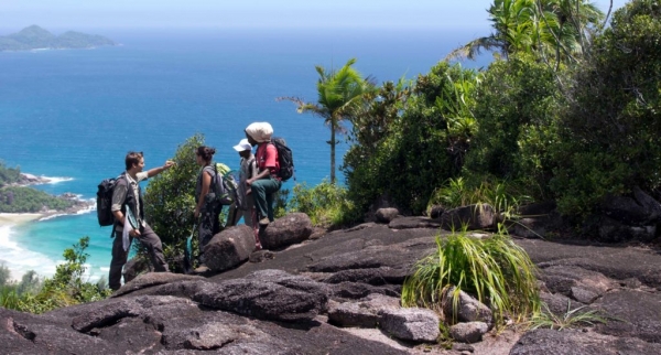 Image: Researchers collecting data on plant-pollinator interaction networks in the Seychelles (Credit: Unviersity of Exeter)