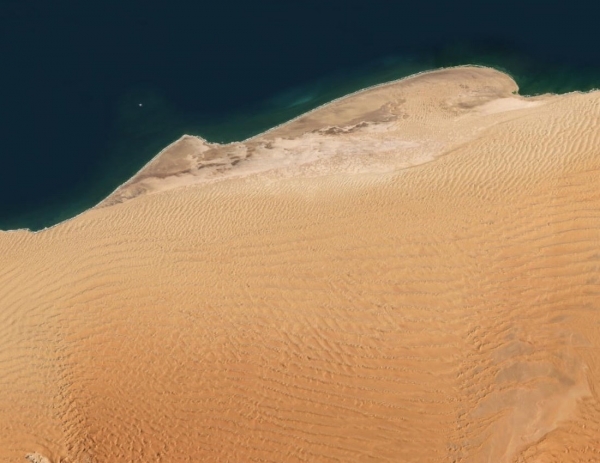 Image: Complex patterns formed by linear and oblique dunes in the Namib Desert, Namibia. (Image credit: ESRI via Stanford University)