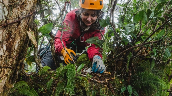 Image: Some 80 feet above ground, USU ecologist Jessica Murray studies soil canopies in tropical montane forests of Costa Rica. The doctoral candidate published findings in the journal 'Geoderma' and presents at the 2023 ESA meeting. (Photo credit: Mario Molina via Utah State University)