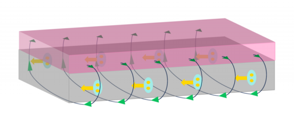 Image: In one design of the new superconducting device, the diode consists of a ferromagnetic strip (pink) atop a superconducting thin film (grey). The team also identified the key factors behind the resulting current that travels in only one direction with no resistance. Credits: Image courtesy of A. Varambally, Y-S. Hou, and H. Chi.