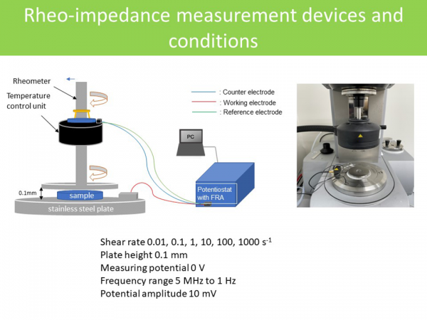However, evaluating the dispersibility of thick slurries with high particle concentrations is remarkably difficult. The large number of particles prevent peering into the internal structure of the slurries using direct spectroscopic techniques. Moreover, there are no methods to evaluate the dispersibility and conductive properties of slurries in response to shear stress applied during the coating process.