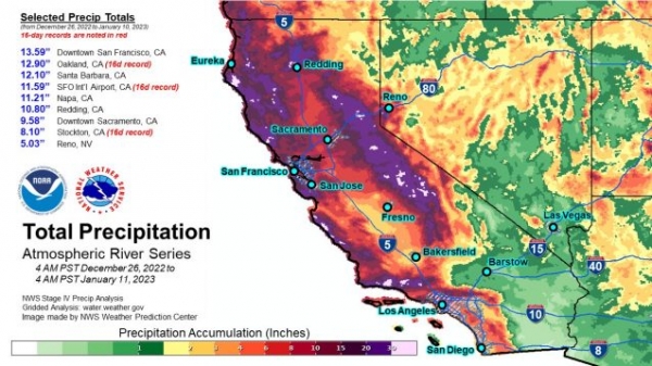 A series of back-to-back atmospheric rivers has drenched much of California since late December 2022, leading to floods, debris flows, road closures, and over a billion dollars of damage.