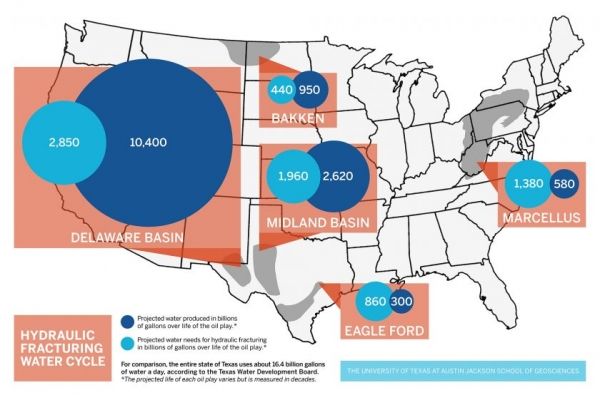 Enough water will come from the ground as a byproduct of oil production from unconventional reservoirs during the coming decades to theoretically counter the need to use fresh water for hydraulic fracturing operations in many of the nation’s large oil-producing areas.