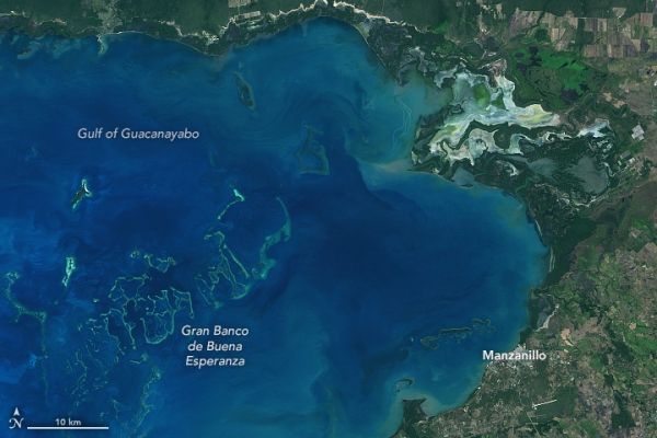 Sediments flowing into the bay from the Río Cauto have built up an impressive delta and even helped bury a reef.